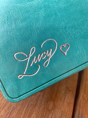 Leather debossing is another heat-permanent option. This surface works best on genuine leather, and the letters are literally burned, or branded, into the item for a permanent impression in the surface.